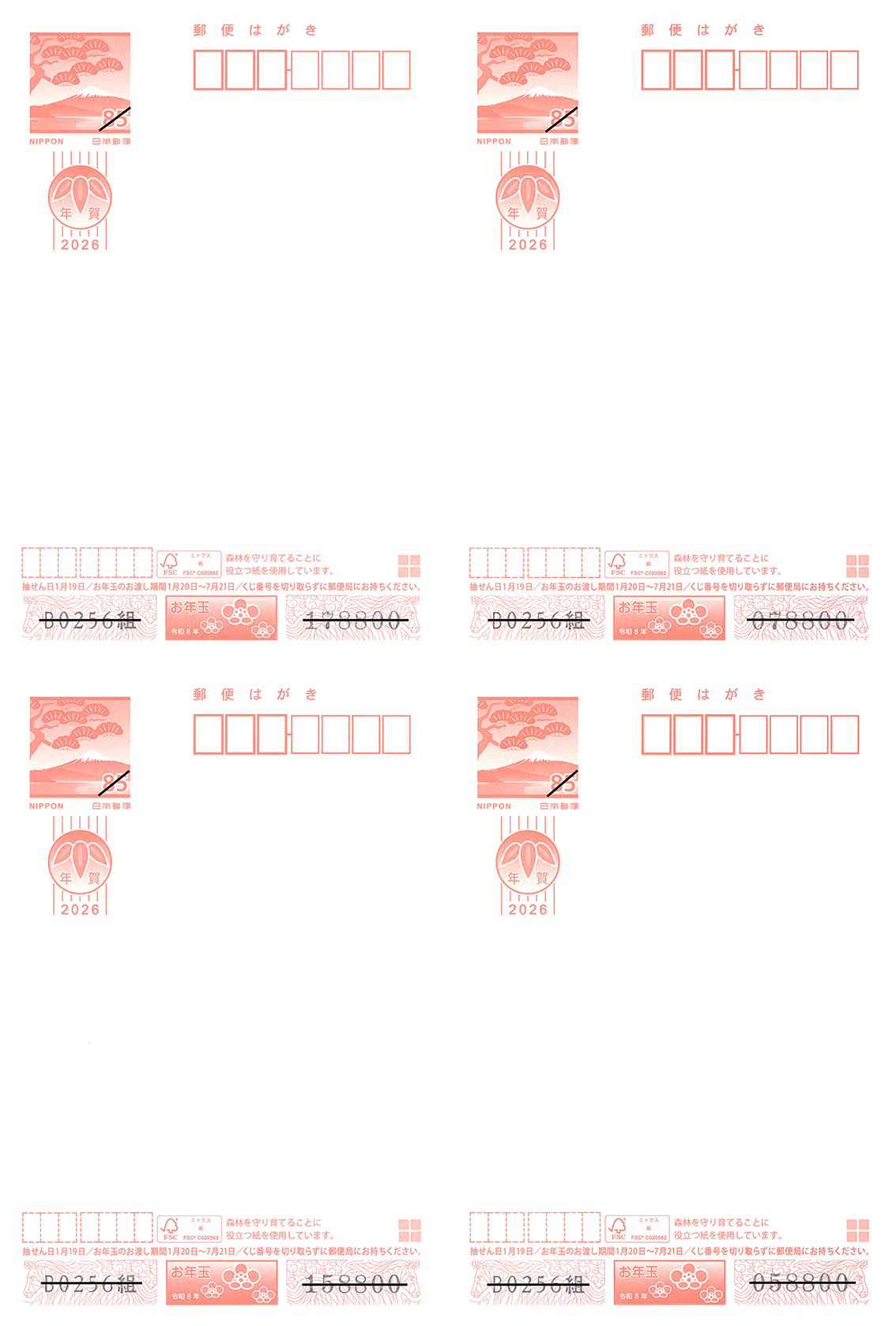 - 年賀状には宛名面に「くじ番号」が印刷されているため、官製はがきと印刷範囲が異なりますのでご注意ください。