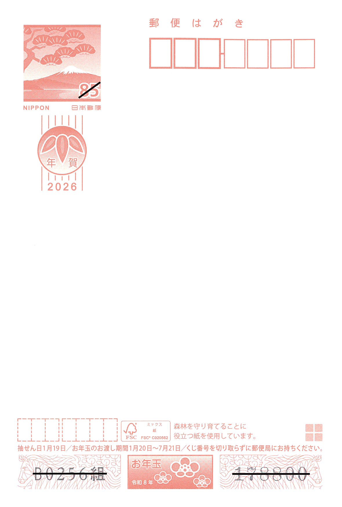 - 紙詰まりや印字不良などが発生した場合、はがきの交換を行います。そのため、くじ番号は連番でない場合がございます。