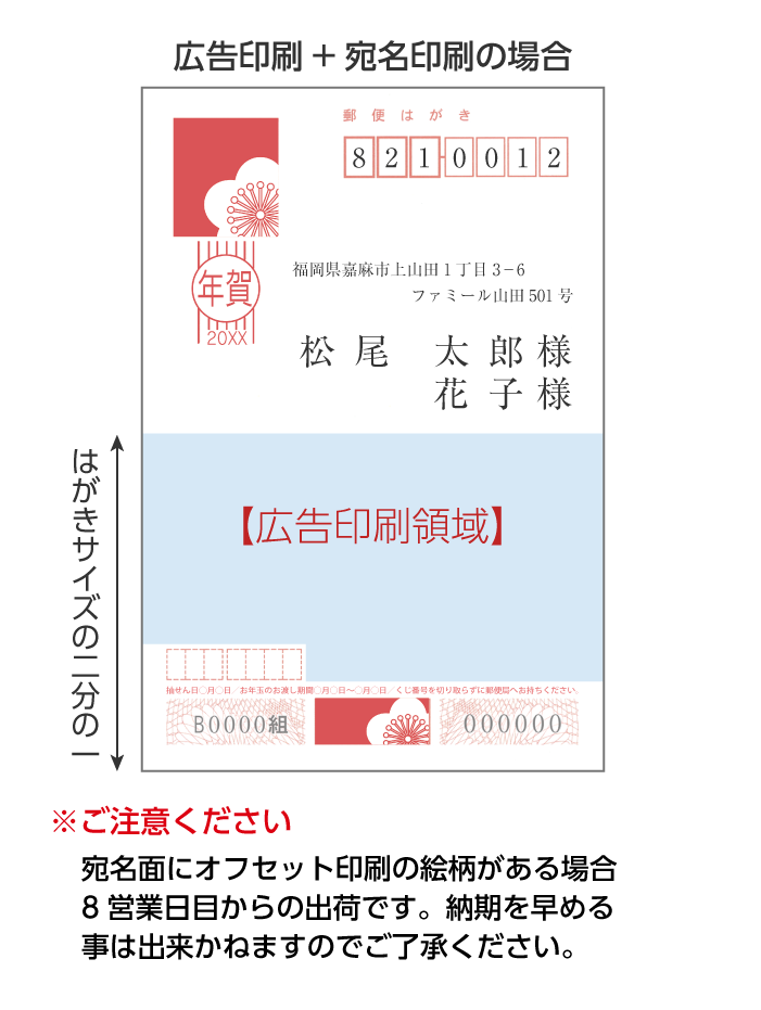 宛名印刷を選択された時点で2営業日プラスとなりますのでご注意ください。